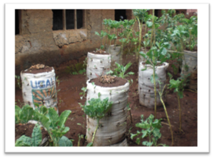 Bag gardening is an alternative technique to growing crops in a large field. Bag or sack gardening grows plants vertically in containers or bags filled with soil. More formally, it is defined as a type of urban agriculture with the objective of reducing income expenditure on farming for households located in densely populated areas (Peprah et al., 2014). Moreover, bag gardening is a cost-effective method to help women in peri-urban areas who face limited access to credit and financial resources to invest in gardening tools, seeds and fertilizers. This approach also has the potential to mitigate the effects of malnutrition caused by the lack of nutrient dense vegetables in everyday diet due to unavailable land.