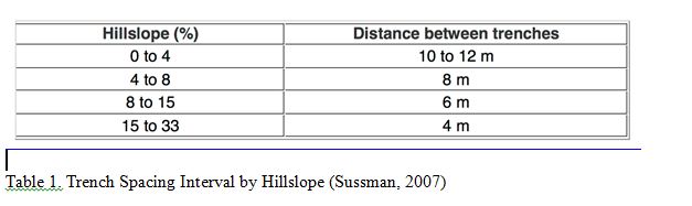 10.Sussman, Daniel. Design Manual: Contour Trenches (n.d.): n. pag. University of California Santa Barbara, 2007. Web.