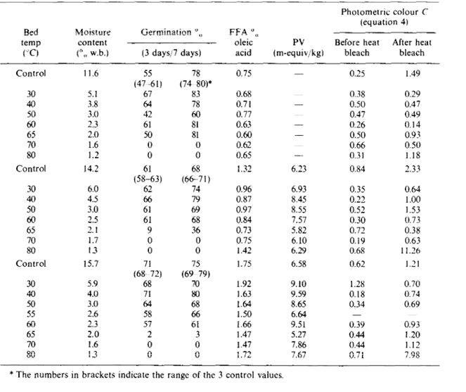 Table 5: impact of drying temperature on germination rate of rapeseeds. Retrieved from: http://www.sciencedirect.com.subzero.lib.uoguelph.ca/science/article/pii/0022474X82900029